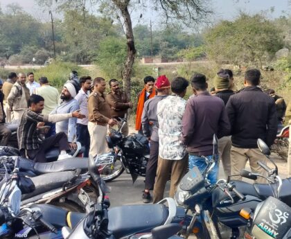करेरा। पुलिस अधीक्षक महोदय श्री रघुवंश कुमार सिह जी के द्वारा जिले मे अवैध मादक पदार्थ जुआ सट्टा, अवैध हथियार, अवैध खनन परिवहन, अवैध शराव की धरपकड अभियान के तहत जीरो टालरेन्स अपनाने के निर्देश दिये गये उक्त निर्देश के पालन में करेरा पुलिस ने जुआ खेलते 5 लोगो को गिरफ्तार किया है। थाना प्रभारी करैरा सुरेश शर्मा ने बताएस कि पुलिस को मुखविर द्वारा सूचना मिली कि विपिन होटल के सामने खेत मे कुछ लोग ताश पत्तो से रूपये पैसो का हार जीत का दांव लगा कर जुआ खेल रहे है मुखबिर की सूचना की तस्दीक हेतु मुखबिर द्वारा बताये स्थान पर पहुचे तो छिप कर देखा तो कुछ लोग इकठ्ठे होकर गोल घेरा बनाकर रूपये पैसो से हार जीत का दांव लगा कर ताश पत्तो से जुआ खेलते दिखे जिन्हे हमराही फोर्स तथा साक्षी को दिखाया जुआ खेलने का पूर्ण विश्वास होने पर हमराही फोर्स की मदद से घेर कर पकडा नाम पता पूछा तो पहले ने अपना नाम दीपक पुत्र नरहरी शर्मा उम्र 19 बर्ष नि. करैरा , दूसरे ने अभिषेक पुत्र अरविन्द खटीक उम्र 20 बर्ष नि. रामजानकी मंदिर के पास करैरा , तीसरे ने गौरव पुत्र संतोष रजक उम्र 22 बर्ष नि. करैरा , चौथे ने फरमान पुत्र शरीफ खांन उम्र 26 बर्ष नि. करैरा , पांचवे ने अक्षत पुत्र संतोष गोयल उम्र 19 बर्ष नि. करैरा का होना वताया । आरोपी दीपक शर्मा के सामने फड से 1850 रूपये नगद , आरोपी अभिषेक के सामने फड से 1755 रूपये नगद ,आरोपी गौरव के सामने फड से 1960 रूपये नगद , आरोपी फरमान के सामने फड से 1850 रूपये एवं अक्षत गोयल के सामने फड से 780 रूपये मिले कुल नगदी 8195 रूपये एवं फड से एक 52 ताश के पत्तो की गड्डी एवं फड के पास मो.सा. बजाज XCD 125 रजि क्रं. MP33MB0195 , TVS STAR CITY रजि नं.MP33MN2614 , हीरो एच एफ डीलक्स मो.सा. बिना नंबर की , टीव्हीएस अपाचे मो.सा.MP33MX8085 , हीरो एच एफ डीलक्सा मो.सा. क्रं.MP33MV7409 , हीरो होन्डा सीडी डीलक्स मो.सा. क्रं.MP33MF9538 , हीरो स्पेलेन्डर प्लस UP92K3781 , होन्डा साईन मो.सा. क्रं.MP33MZ6681 कुल 8 मो.सा. रखी होना पायी गयी जिन्हे जप्त किया गया । आरोपीगणों के विरुद्ध धारा 13 जुआ एक्ट के तहत अप0 क्र0 736/23 पंजीबद्ध किया गया ।