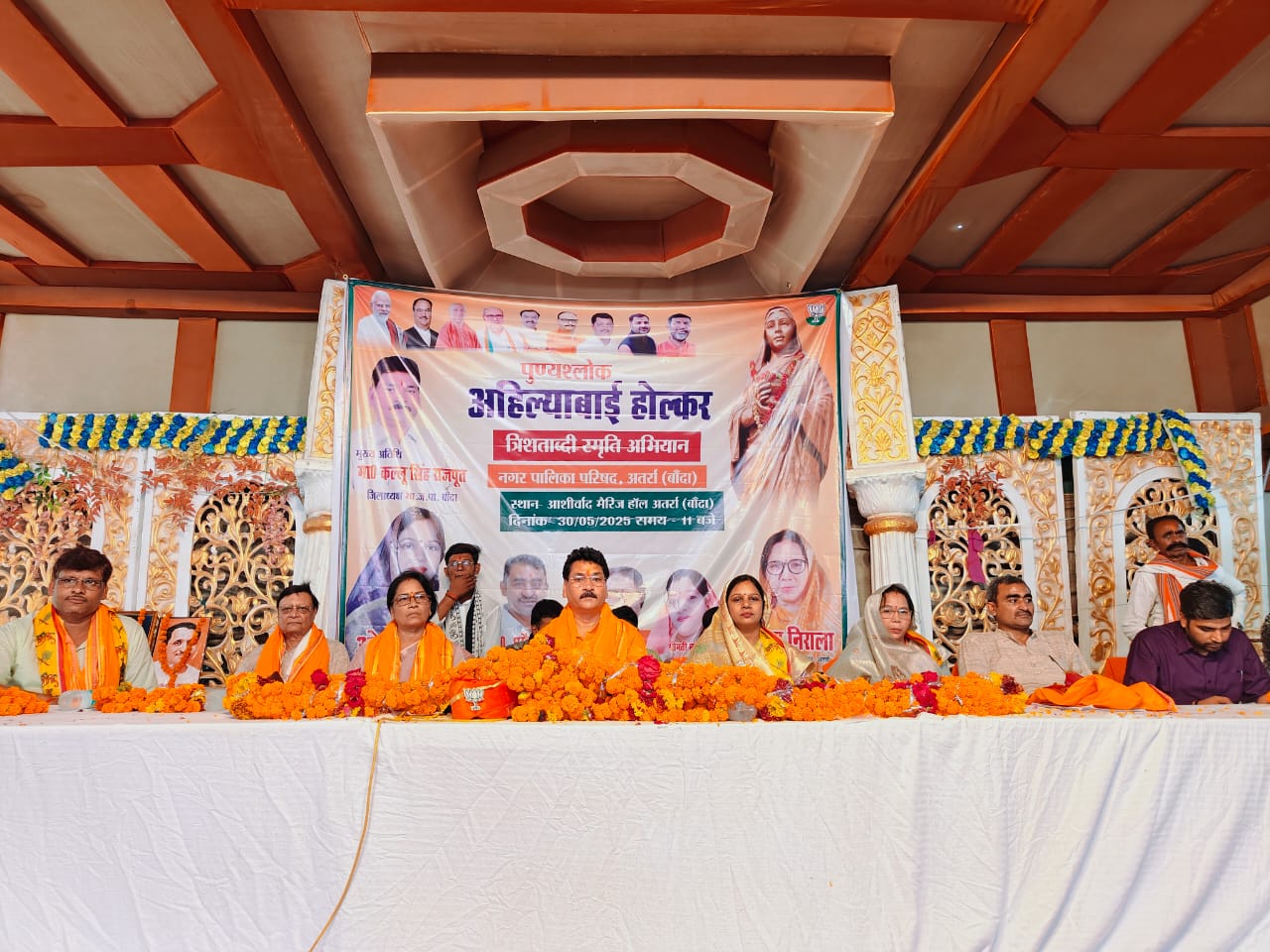 अतर्रा। आशीर्वाद मैरिज हॉल अतर्रा ने पुण्य श्लोक अहिल्याबाई होल्कर त्रिशताब्दी स्मृति अभियान के तहत महिला सशक्तिकरण सम्मेलन कार्यक्रम संपन्न हुआ कार्यक्रम के मुख्य अतिथि जिला अध्यक्ष कल्लू सिंह राजपूत विशिष्ट अतिथि विधायक नरैनी ओममणी वर्मा कार्यक्रम की अध्यक्षता नगर पालिका अध्यक्ष संगीता निराला ने किया कार्यक्रम जिला संयोजक धर्मेंद्र त्रिपाठी मंडल अध्यक्ष ज्ञान प्रताप सिंह मंडल प्रभारी गिरिजेश तिवारी मंडल कार्यक्रम संयोजक दीनदयाल द्विवेदी नगर कार्यक्रम संयोजक