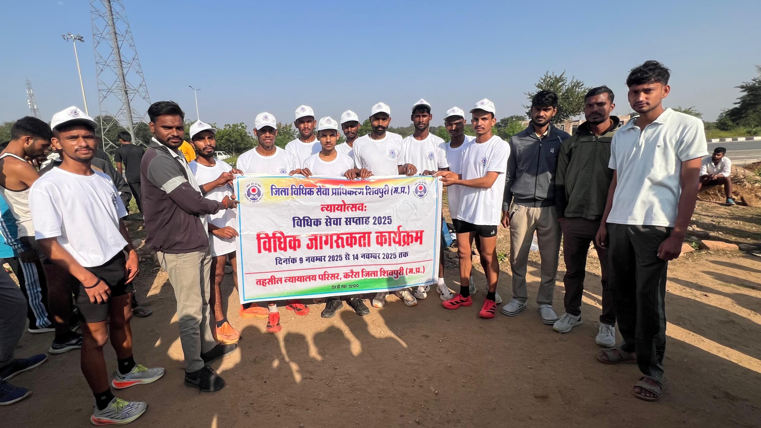 करैरा।माननीय प्रधान जिला एवं सत्र न्यायाधीश राजेन्द्र प्रसाद सोनी के निर्देशन में तथा प्रथम जिला न्यायाधीश अध्यक्ष विधिक सेवा समिति दिनेश कुमार खटीक के मार्गदर्शन में विधिक सेवा दिवस के अवसर पर नए अमोला स्थित खेल परिसर में टाइगर अकेडमी के सहयोग से छात्रों के मध्य “न्याय के लिए दौड़” कानूनी जागरूकता की ओर प्रत्येक कदम के उदघोष से मैराथन दौड़/दौड़ कार्यक्रम का आयोजन जनभागीदारी एवं जागरूकता को मजबूत करने के उद्देश्य से कराया गया। उक्त मैराथन दौड़ में लगभग 140 छात्रों ने हिस्सा लिया। जिसमें प्रथम स्थान प्रशांत लोधी, द्वितीय स्थान हृदेश कदम, एवं तृतीय स्थान कृष्ण खरे ने प्राप्त किया। उक्त कार्यक्रम आयोजन में संचालक प्रतीक राय एवं अमन सिंह की महत्वपूर्ण भूमिका रही।