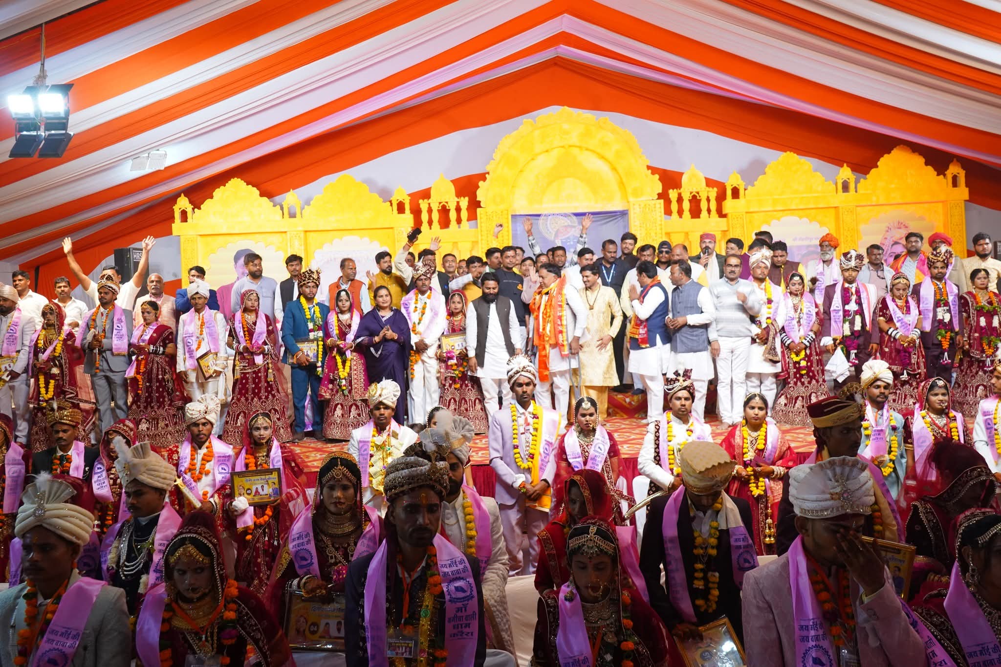 अमीर-गरीब, जाति-भेद जैसी दीवारें खत्म हो जाती हैं। कार्यक्रम में ग्वालियर सांसद भारत सिंह कुशवाह, विधायक रमेश खटीक, वृंदावन के प्रख्यात कथा बकता पंडित कृष्ण कांत त्रिपाठी ,बागेश्वर बालाजी के हजारों भक्त और अनेक गणमान्य लोग उपस्थित रहे। वरमाला के समय पूरा परिसर तालियों और जयकारों से गूंज उठा। समिति ने सभी जोड़ों को एक जैसा महत्व दिया। किसी विशेष व्यक्ति या दंपत्ति के लिए अलग व्यवस्था नहीं थी, जिससे आयोजन में समानता, एकता और सामाजिक सम्मान की भावना मजबूत हुई