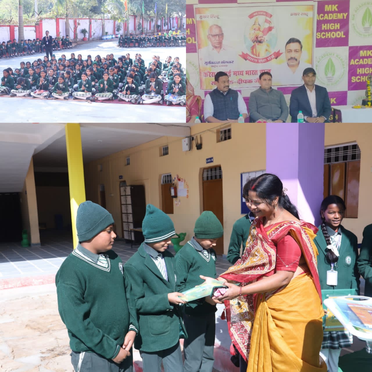 भारती जैन ने बच्चों को संबोधित करते हुए कहा कि वीर बाल दिवस हमें यह सीख देता है कि देश और धर्म के लिए प्रेम, साहस और सच्चाई कितनी जरूरी है।बच्चों को पढ़ाई के साथ-साथ अपने इतिहास और महान विभूतियों के बलिदान को भी जानना चाहिए। संस्थापक मुकेश प्रजापति ने कहा कि साहिबजादों जोरावर सिंह फ़तेह सिंह का जीवन हर बच्चे के लिए प्रेरणा है। आप सभी अपने अपने जीवन में ईमानदारी, अनुशासन और देशभक्ति को अपनाएं और अच्छे नागरिक बनें। कार्यक्रम के अंत में निबंध लेखन प्रतियोगिता में हिस्सा लेने वाले सभी विद्यार्थियों को पुरस्कार के रूप मे स्टडी किट अतिथियों एवं आयोजकगण द्वारा वितरित की गई । पुरस्कार पाकर बच्चों के चेहरे खुशी से खिल उठे। स्कूल परिवार ने सभी अतिथियों, शिक्षकों और विद्यार्थियों का आभार व्यक्त किया। कार्यक्रम का सफल संचालन एम के अकादमी के विनोद कुशवाहा द्वारा किया गया।